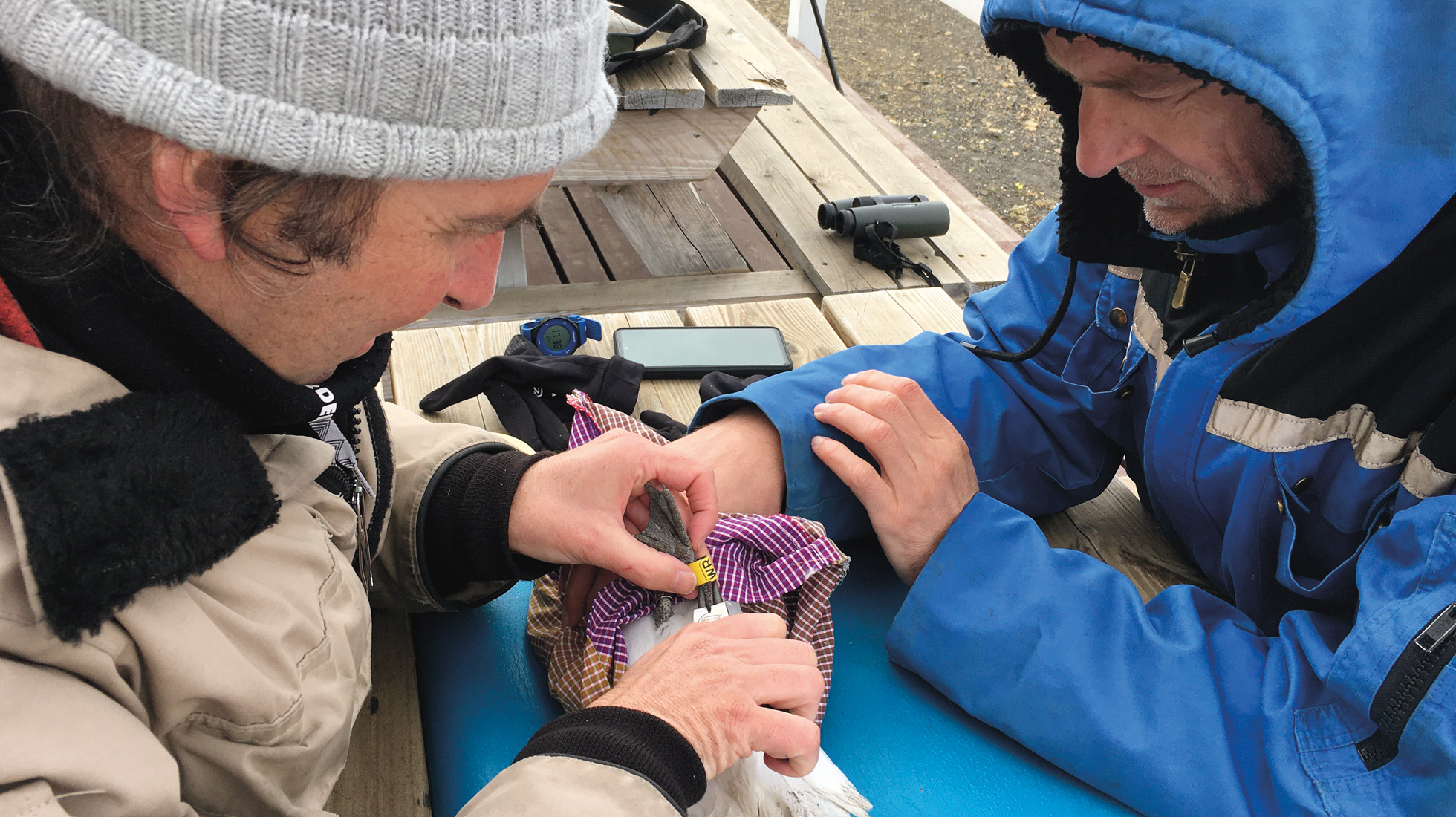 Les chercheurs baguent les oiseaux capturés avant de les relâcher.
