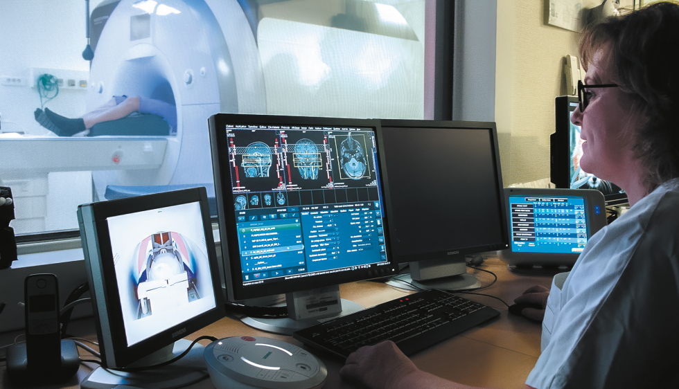 Salle de commande de l’IRM installée sur la plateforme NeurInfo à Rennes.